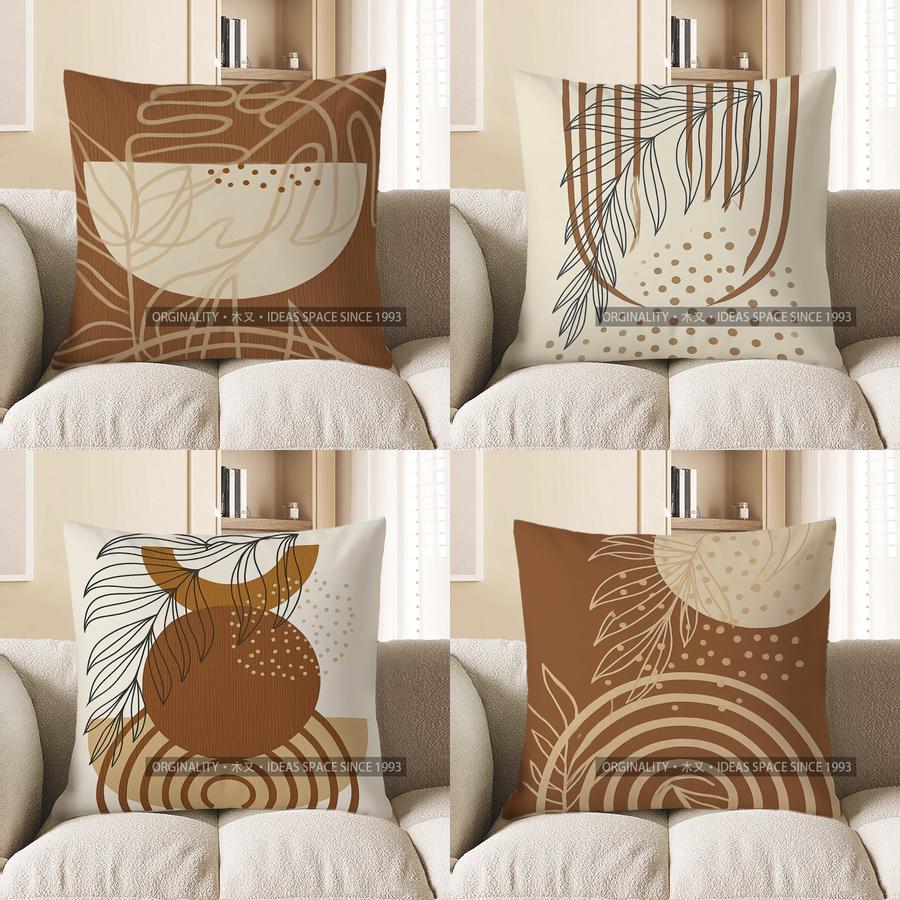 Home Decor Abstract Line & Half-Moon Pattern Pillow Cover Pattern Cushion Cover Suitable For Sofa Bedroom Car Pillow Cover