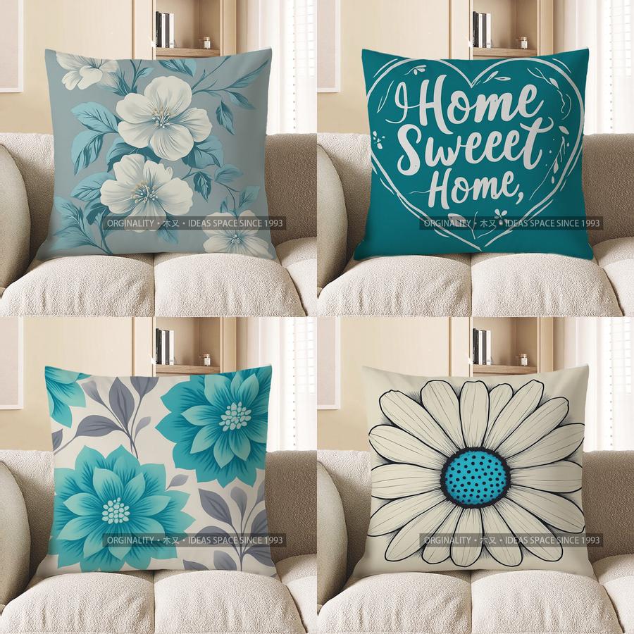 Home Decor Blue And White Floral Pattern Throw Pillow Cover Pattern Cushion Cover Suitable For Sofa Bedroom Car Pillow Cover