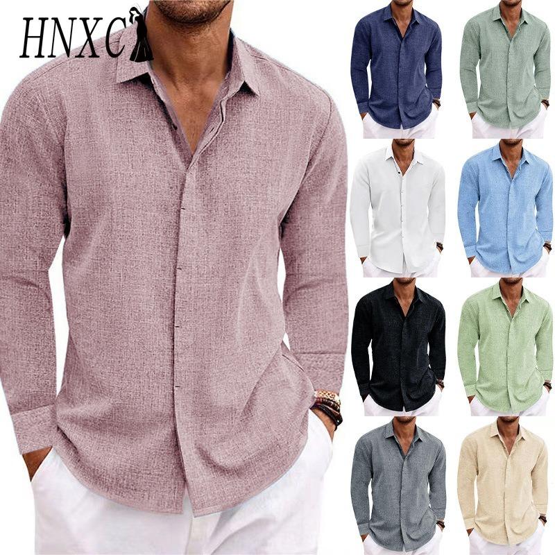 HNXC Men's Fashion Casual Solid Color Print Long Sleeve POLO Neck Blouses & Shirts