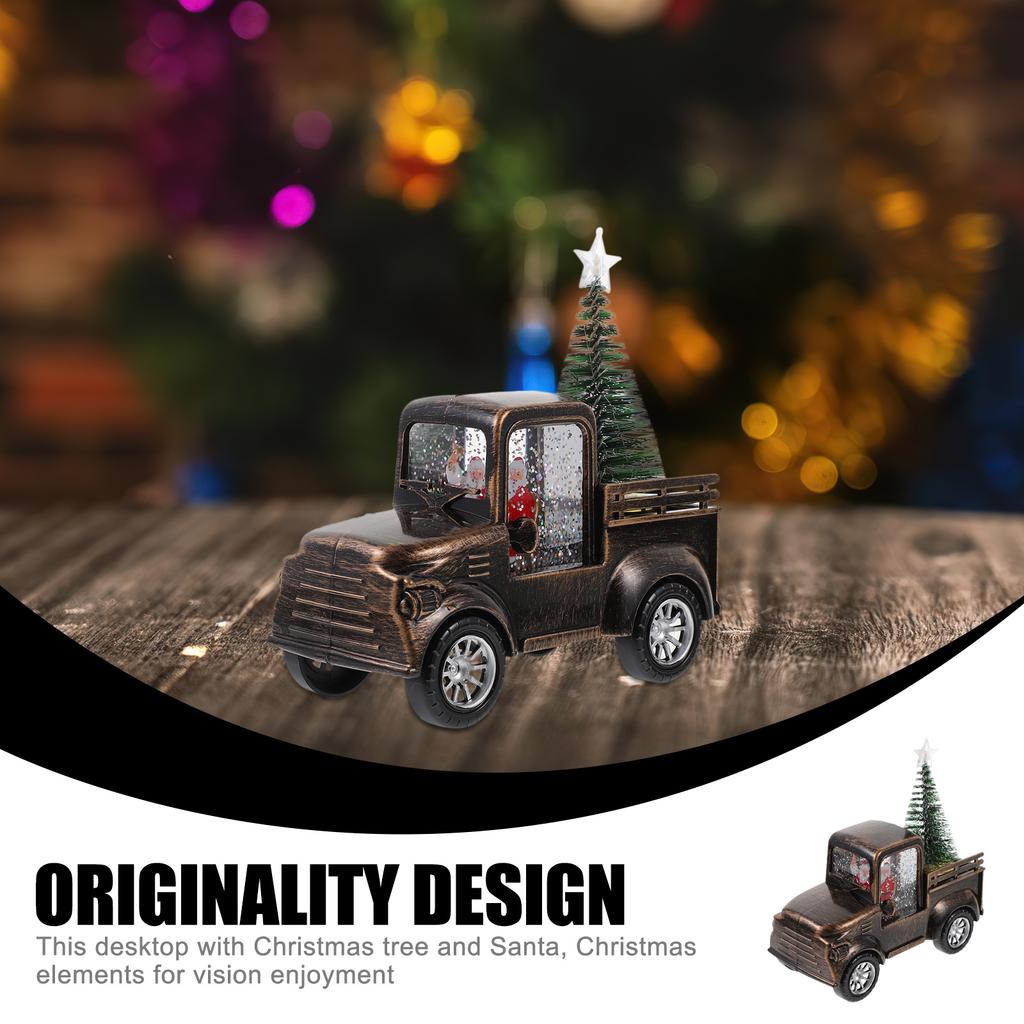 Mini Santa Claus Driving Tractor with Christmas Tree Operated Light Up Tabletop Scene Prop for Holiday Home Office Decor