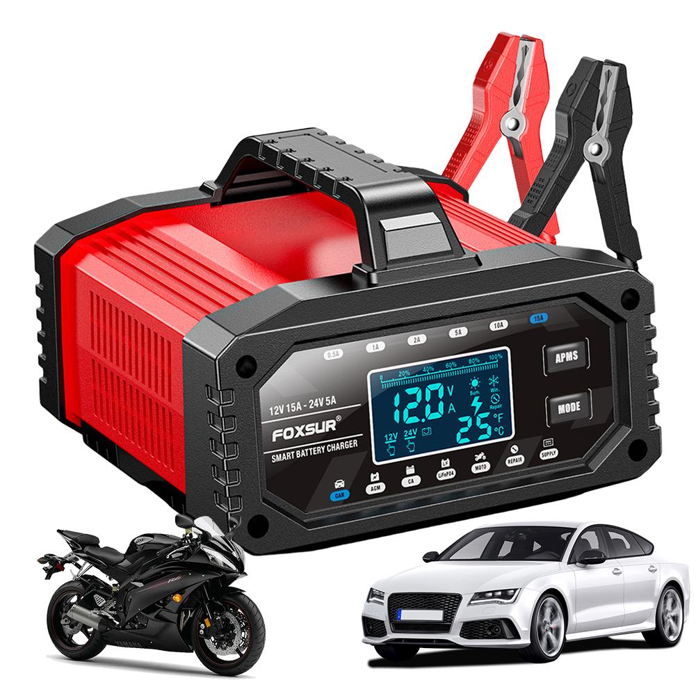 15A 12V 24V Car Battery Charger LCD Display Car Booster Moto Battery Charger for Lead-Acid LiFePO4 AGM Batteries