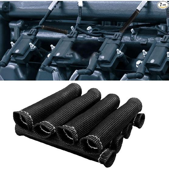 8PCS Spark Plug Wire Heat Shield Sleeve, 1500° Spark Plug Wire Cover Black