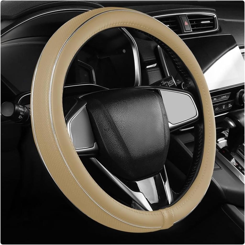 Steering Wheel Cover, Breathable Anti-Slip Car Steering Wheel Protector-Beige
