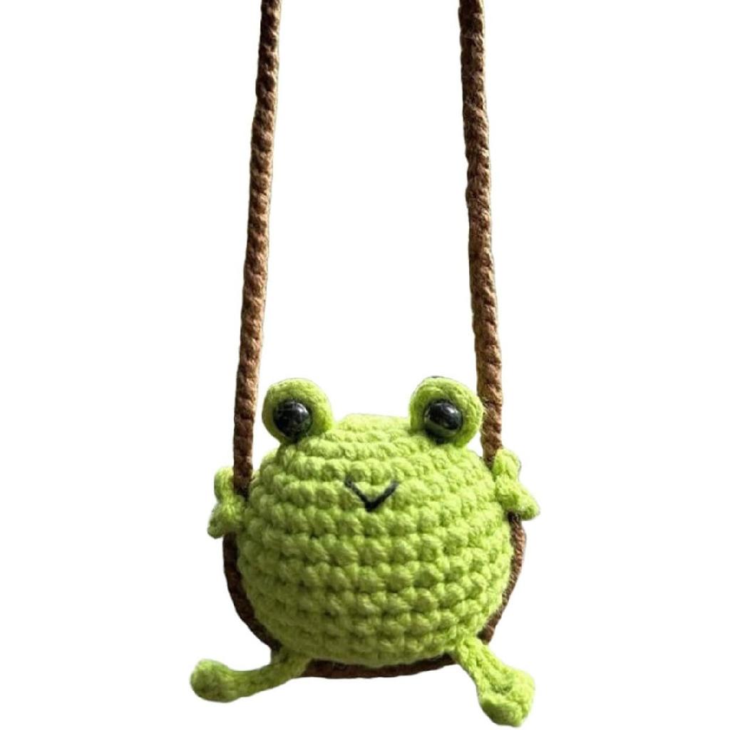 Hanging Accessories for Car Rearview Mirror Decor, Handmade Knitted-Frog