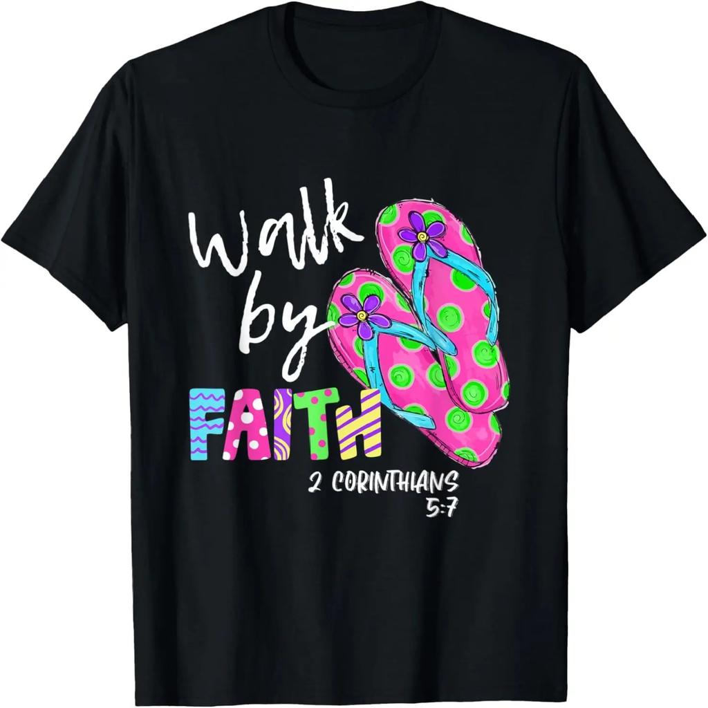 Walk by Faith Flip Flop 2 Corinthians 5_7 Christian Verse T-Shirt