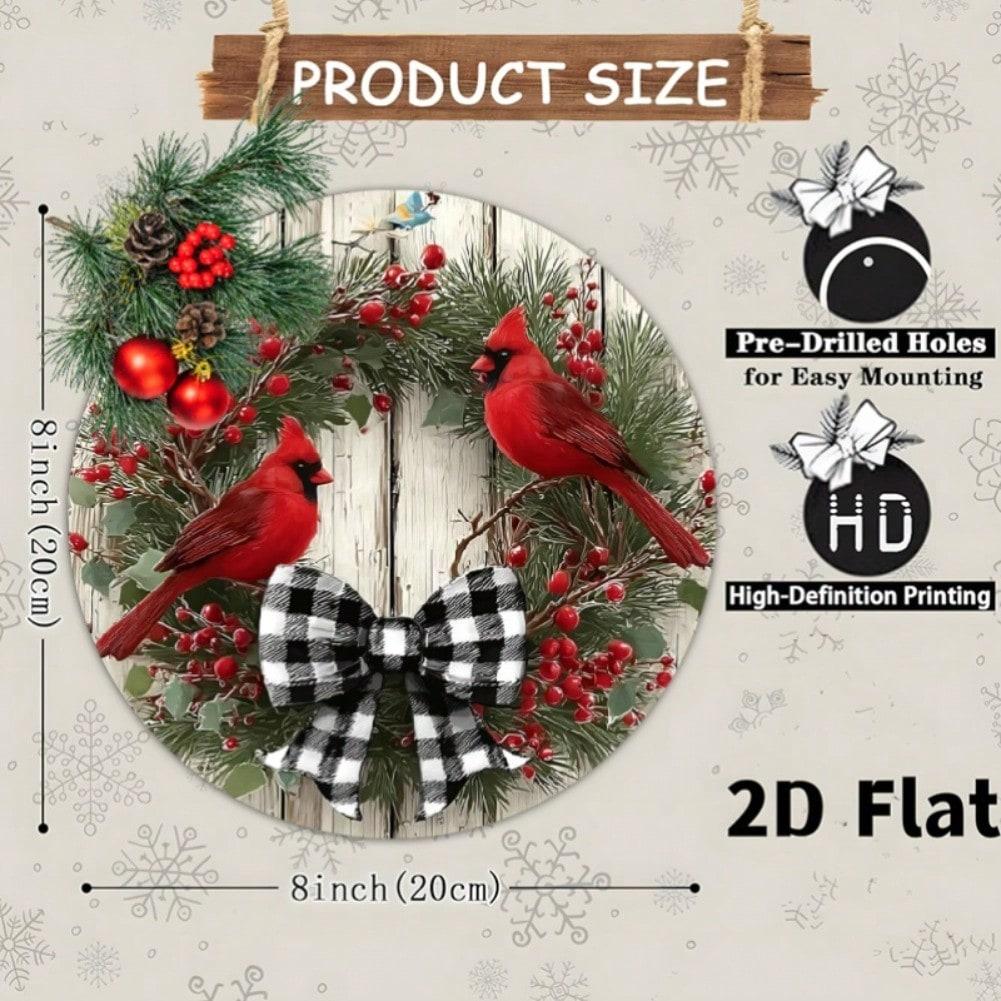 Christmas Wreath Metal Wall Art with Cardinal Birds and Bow