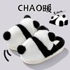 Winter cartoon cute panda plush bag head cotton slippers home indoor warm confinement soft-soled shoes couple
