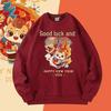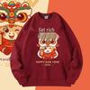 Celebrate the vibrancy of Chinese New Year with this eye-catching hoodie, featuring a charming waking lion cartoon print. Designed with a trendy loose fit, it's perfect for couples looking to embrace style together. The hoodie boasts a comfortable stand neckline and long sleeves, making it suitable for cooler weather. Crafted from polyester material, it offers both durability and softness. Complemented with polyester fiber fur, this piece adds an extra touch of warmth and coziness, ideal for festive outings and everyday wear.