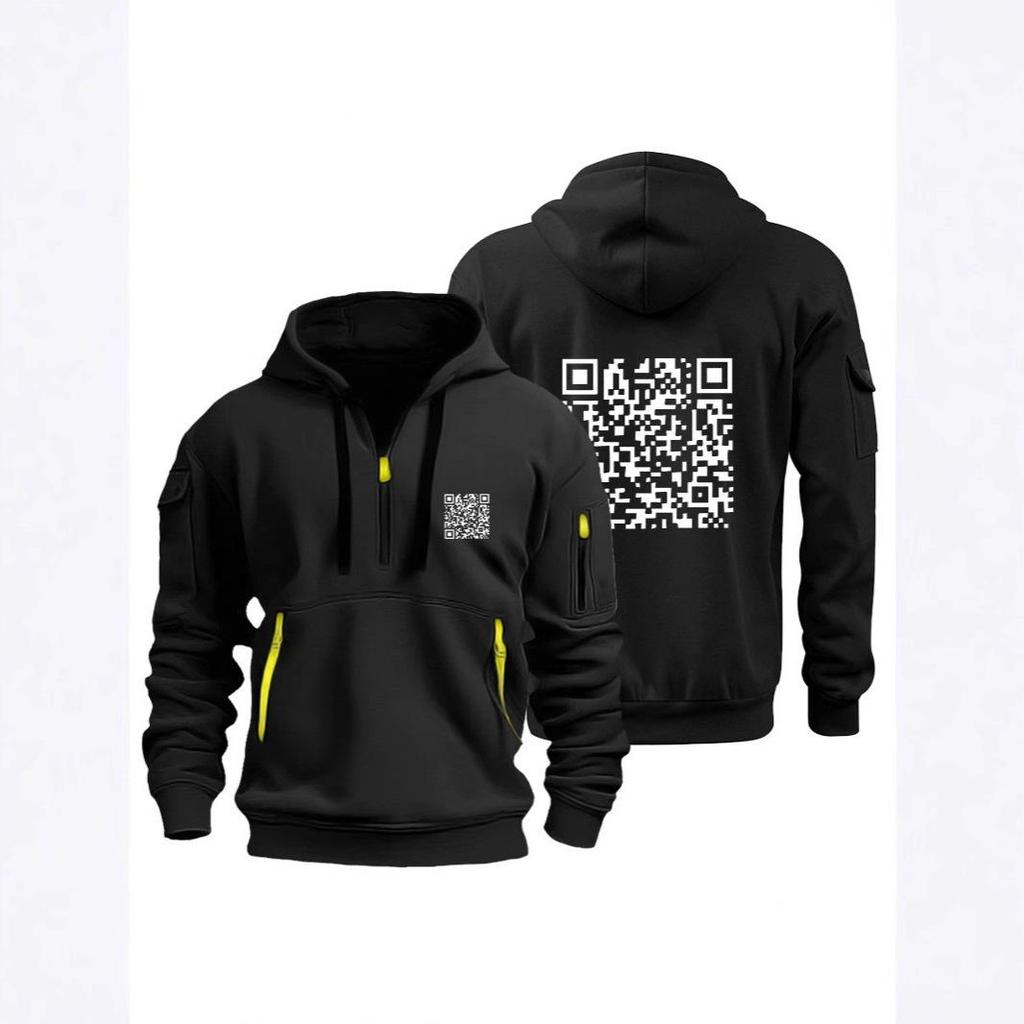 Elevate your style with this innovative men's sweatshirt jacket, designed to set trends with its standout QR code print. Crafted with a stand neckline and long sleeves, this hoodie offers a modern, edgy look while ensuring comfort with its thin, lightweight design. Made from high-quality polyester fiber, it features a plush interior for added warmth, perfect for cooler days. The loose fit provides a relaxed yet stylish vibe, making it an essential addition to any fashion-forward wardrobe.
