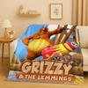 Kawaii Grizzy and The Lemmings Cartoon Flannel Blanket,Ultra Soft Warm Plush Throw for Home Bedroom Bed Sofa Cover Kids Gift
