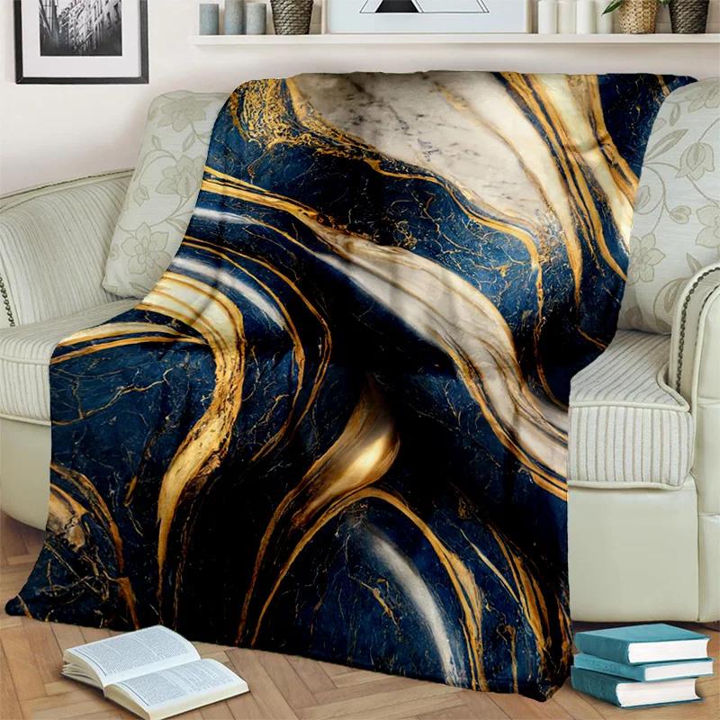 3D Lüks Renk Mavi Yeşil Altın Mermer Desen Battaniye, Ev Yatak Odası Yatak Kanepe Seyahat Kapak Battaniye Çocuk için Yumuşak Atmak Battaniye