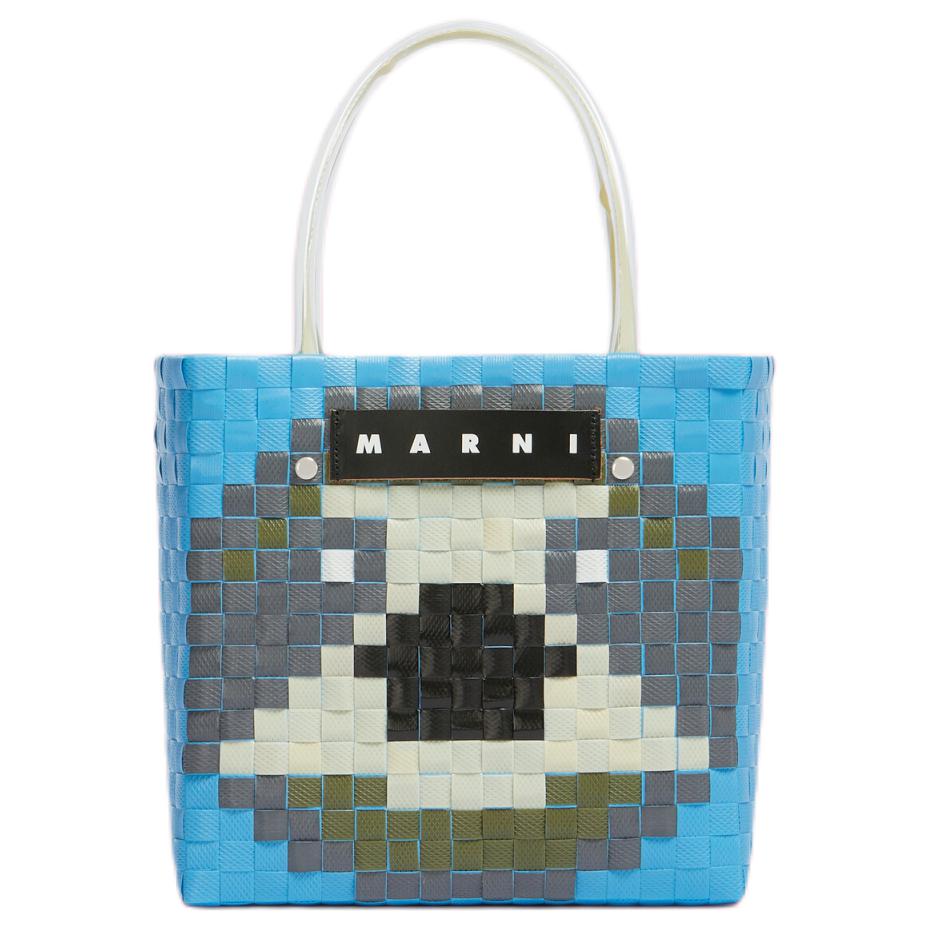 Marni Market Letter Patch Woven Fabric Polypropylene Tote Shopping Bag Women tote Light-Blue SHMH0063JBRF08100B30