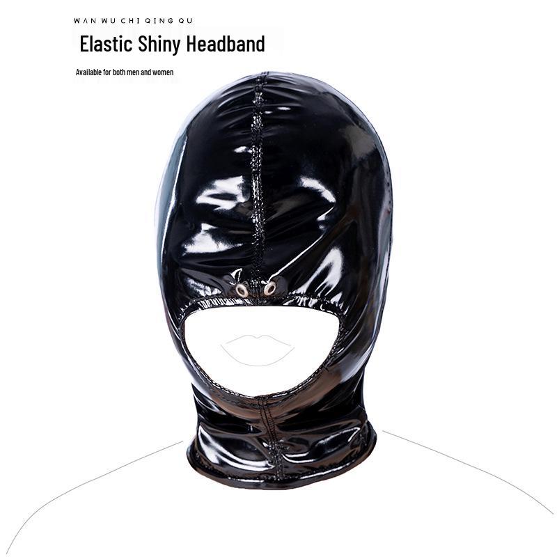 Sensual Elastic Glossy Mask with Mouth Opening for Roleplay and Crossdressing