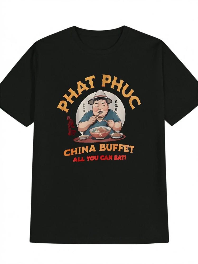 Black Polyester Men's Casual Crew Neck T-Shirt | Funny "PHAT PHUC" Graphic, Unisex T-Shirt