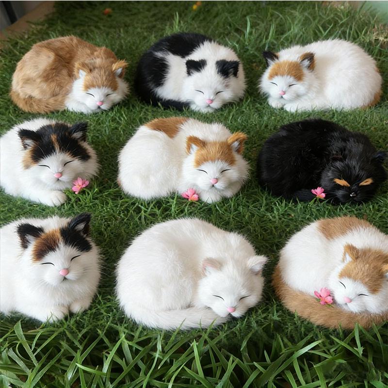 Ev Dekorasyonu İçin El Yapımı Gerçek Kürk Kedi Model Peluş Süs