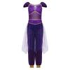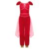 Girls Belly Dance Costume Arabian Princess Rompers Sequined Waist Tulle Overlay Jumpsuit Contrast Color Rhinestone Decor
