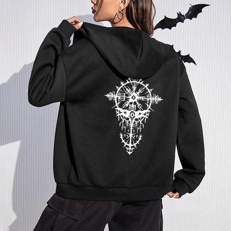 Ancient Viking Raven Print Hoodie Autumn Women's Hooded Sweatshirt Classic Dark Gothic Style Zip-up Coat Urban Jacket