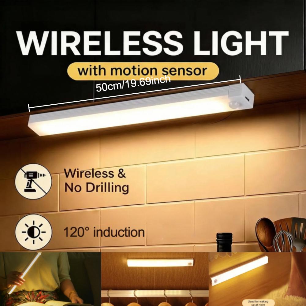 Motion Sensor LED Under Cabinet Lamp Dimmable Rechargeable Night Light Stairs Closet Room Aisle Tube Bar Detector Bulb