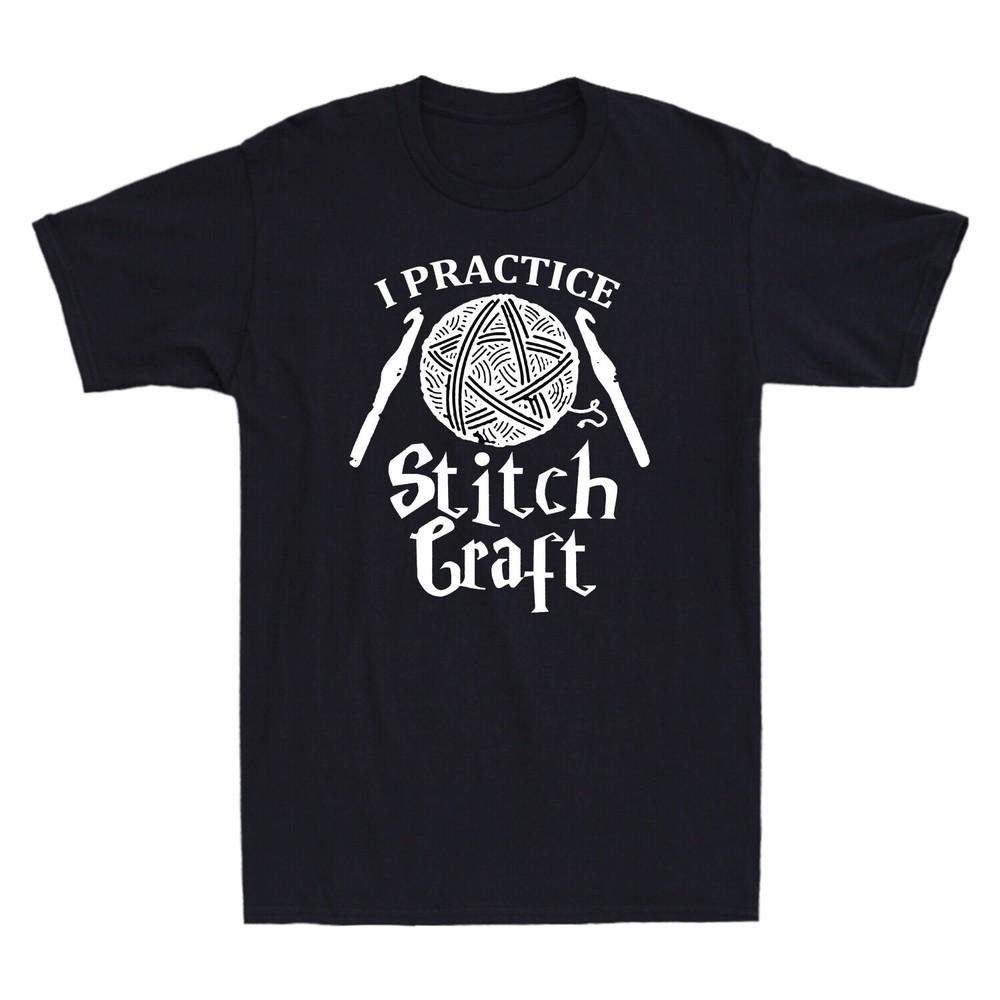 I Practice Stitch Craft Yarn Ball Crochet Vintage Men's T-Shirt Cotton Black Tee Unisex T-Shirt