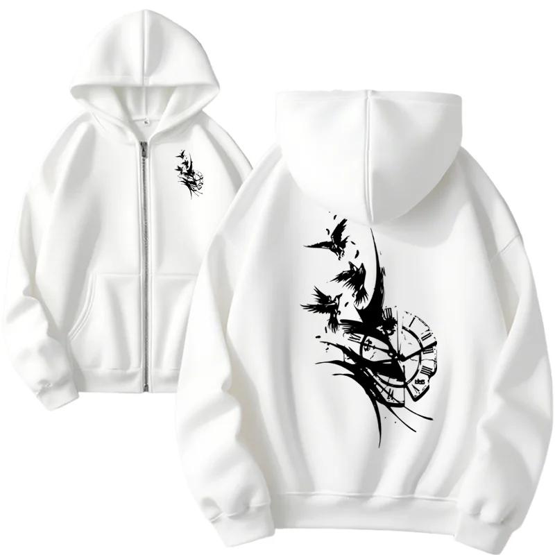 Trendy Women's Zipper Hoodie Viking Raven Print Sweatshirt Autumn Winter Daily Casual Sporty Fashion Coat