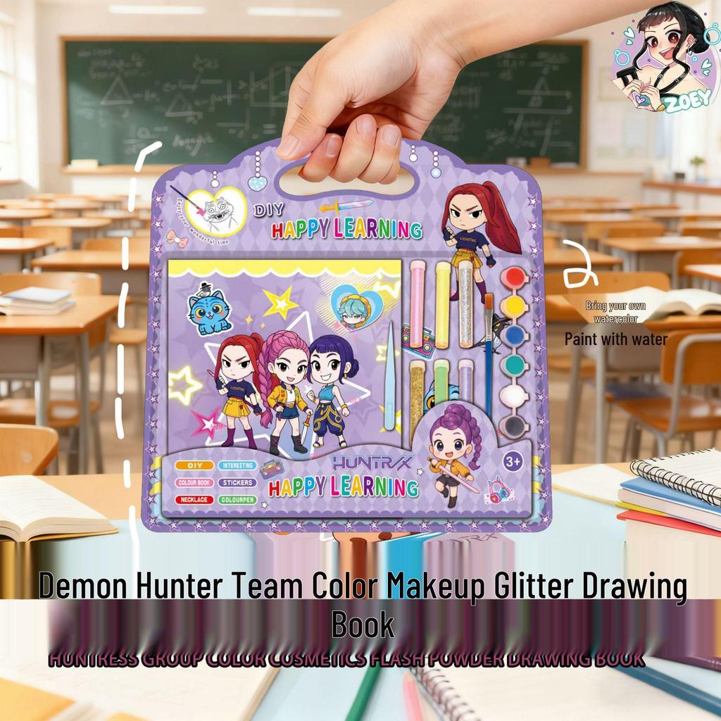 KPOP Witch Group DIY Coloring & Glitter Makeup Book with Sanrio Watercolor Set