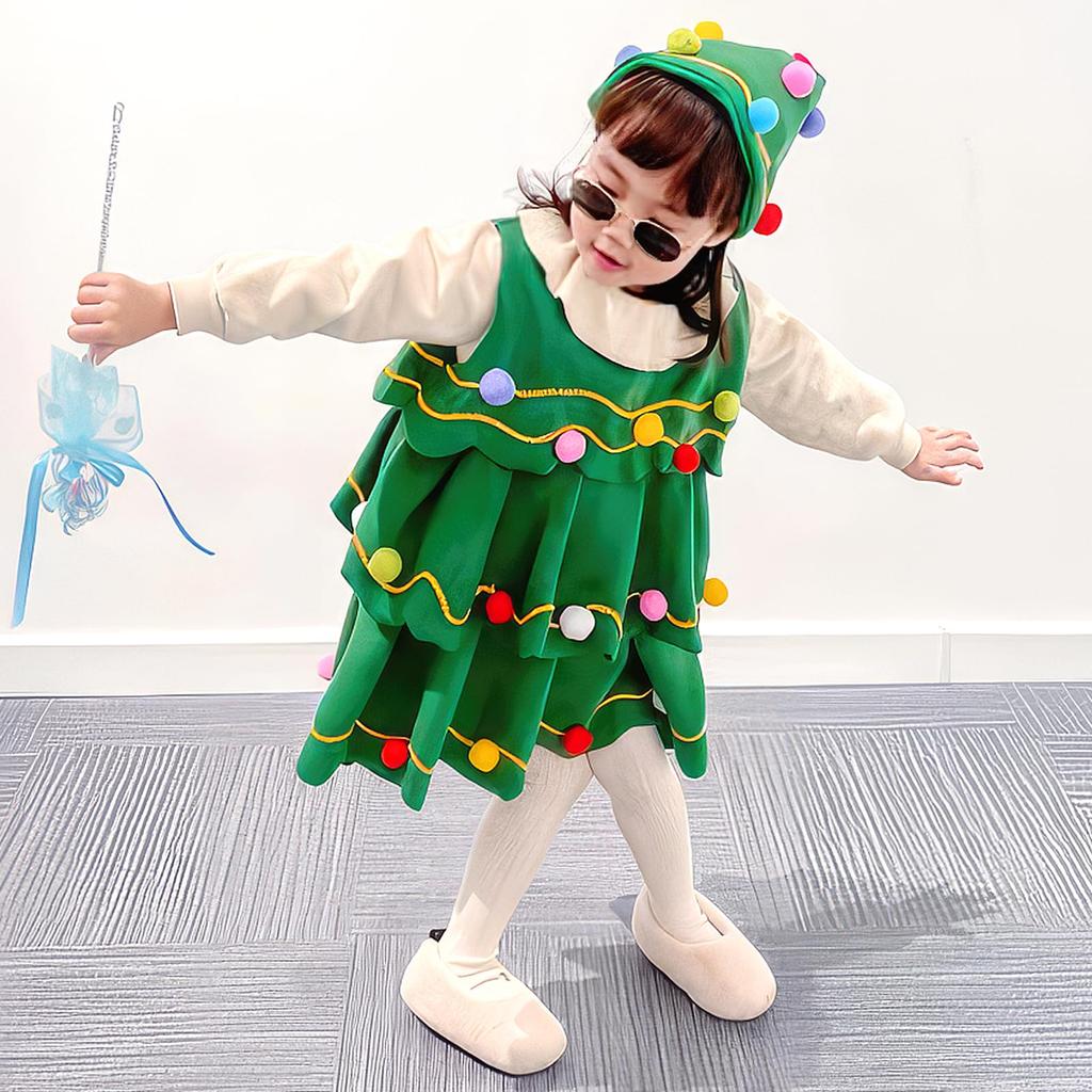 🎄【Product Specifications】This Christmas tree costume set includes a hat and a dress. The skirt is dress-style and does not include sleeves or leggings. We recommend that children wear warm clothing underneath this costume.