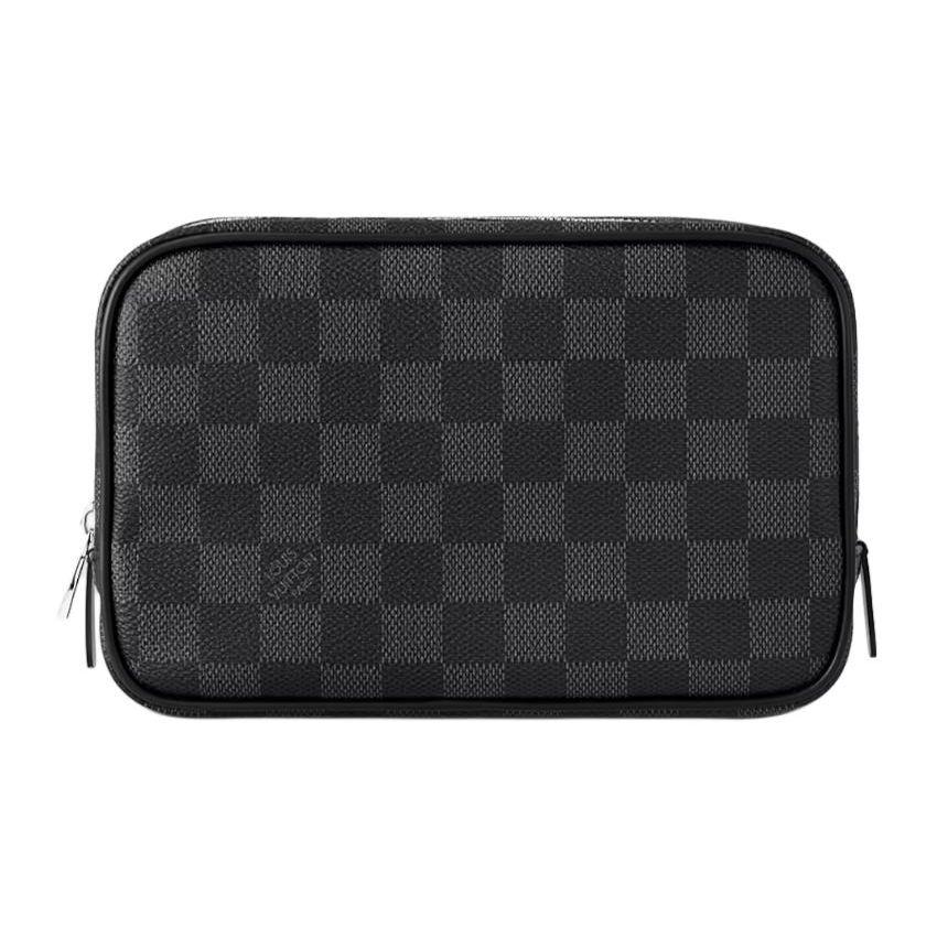 Louis Vuitton Checkered Design Zipper Closure Canvas And Leather Trim Toiletry Bag Women toiletry bag Black N40483