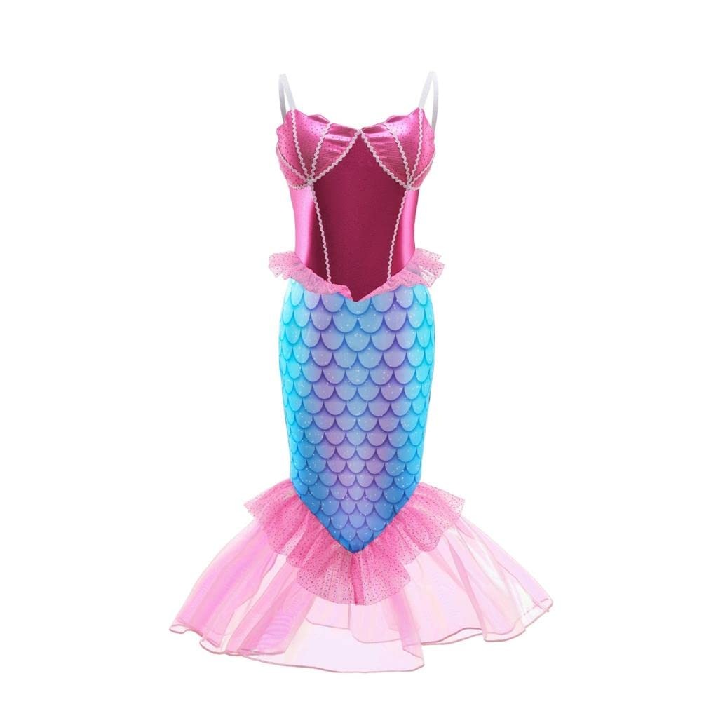 Princess Ariel Mermaid Costume. Mermaid cosplay dress. For kids and girls. Dress up in this cute outfit and have fun as your favorite character. Perfect for: birthdays, Halloween, cosplay, parties, Children's Day, summer vacation, anniversaries, photo shoots, theme parks, amusement parks, carnivals, festivals, princess parties, Christmas, presents, gifts, special occasions, and other events. Choice: Dress only / Dress and accessories. Note: 1) Please make sure you have made the correct selection before purchasing. 2) Due to different measurement methods, slight deviations in size may occur. Please allow for a 1-2cm discrepancy. 3) Product color may vary slightly due to lighting during product photography and the resolution settings of your monitor.