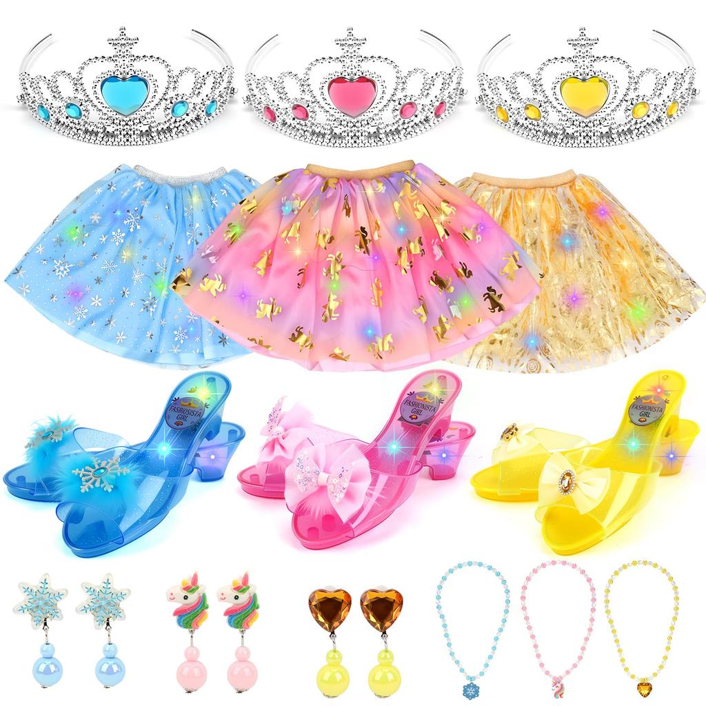 Dreamon Illuminated Princess Dress for 3 Themed High Ages and Perfect Birthday or Christmas Girls, Dresses, Heels, Necklace, Earrings, Crown, etc., 3,
