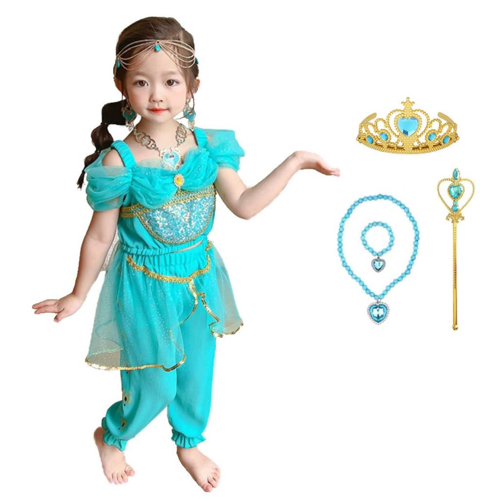 CREDIBLE Princess Cosplay Luxury Arabian Costume Set Heart Magic Original NT5461 Dress, Kids' Costume, 7-Piece (Top, Pants, Tiara, Necklace, Bracelet,