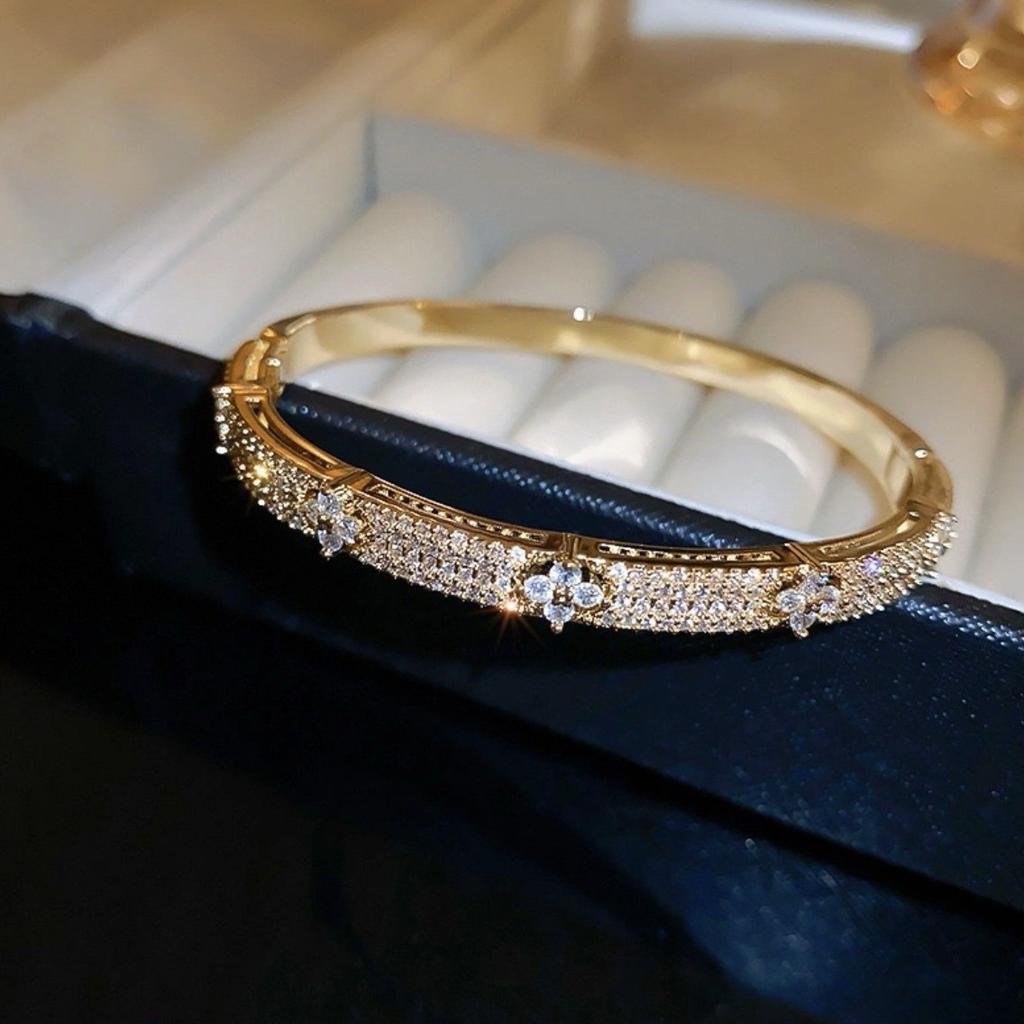 Four-leaf Clover Micro-paved Zircon Bracelet, Fashionable and Light Luxury High-end Jewelry for Women