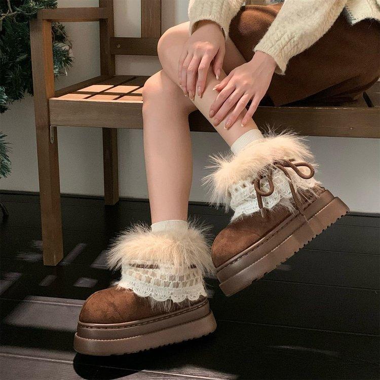 Retro snow boots cotton boots thick-soled fluffy piled thickened warm big cotton shoes