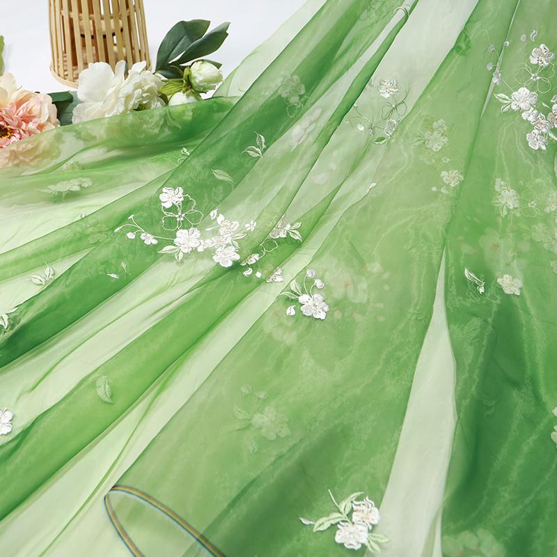 1M Flower Embroidery Gradient Tulle Fabric Flowing Lace Chiffon Fabric For Diy Sewing Chinese Style Hanfu Shirts Stage Costume