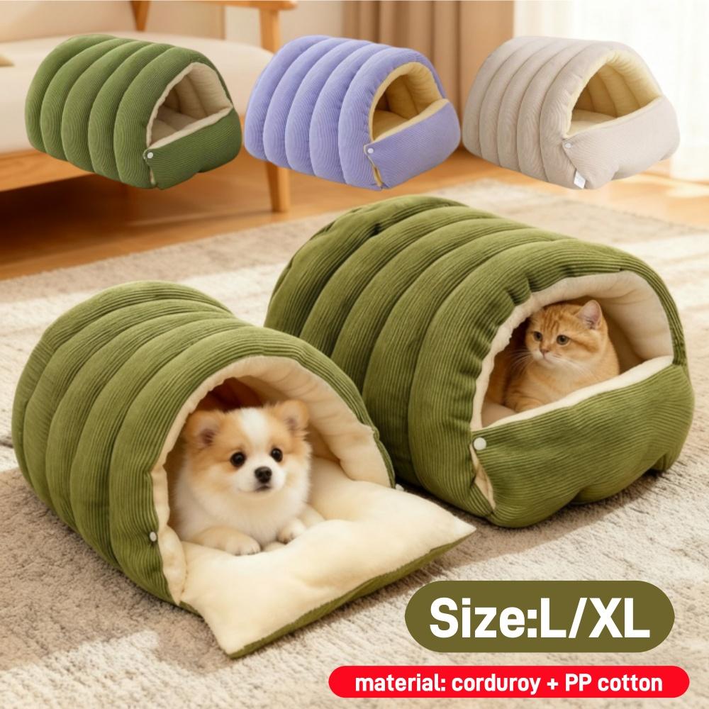 Winter Plush Cat Bed Warm Pet House Thickening Warmth Comfort Soft Kittens Sleeping Beds Closed-Off Cat Cave For Pet Warmth