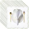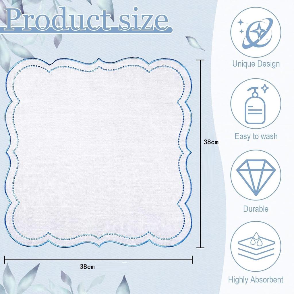 6Pcs Cotton Linen Cloth Napkins Machine Wrinkle Resistance Scalloped Embroidered Cloth Table Napkin for Wedding Holiday Giftable