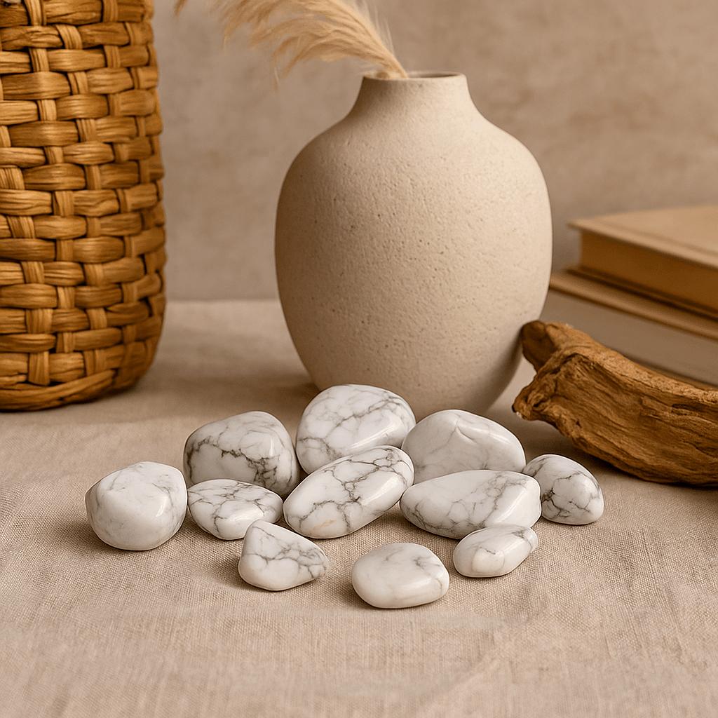 White Howlite Tumbled Stones, 24 Pieces
