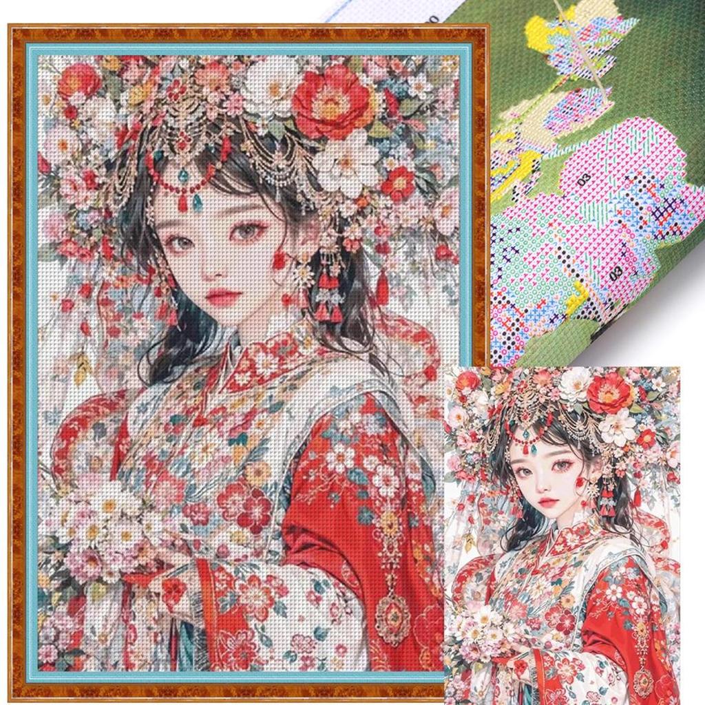 Full Embroidery cotton Thread 14CT Printed Girl Cross Stitch Kit Art