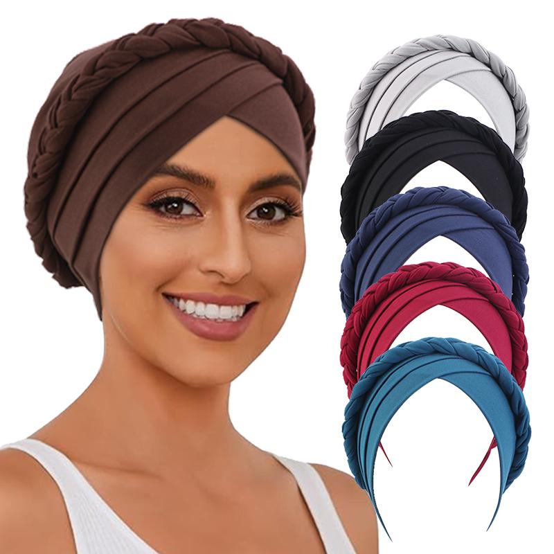 Women Muslim Braid Elastic Turban Hijab Headwrap Chemo Headscarf Hair Cover Wrap Islamic Headwear