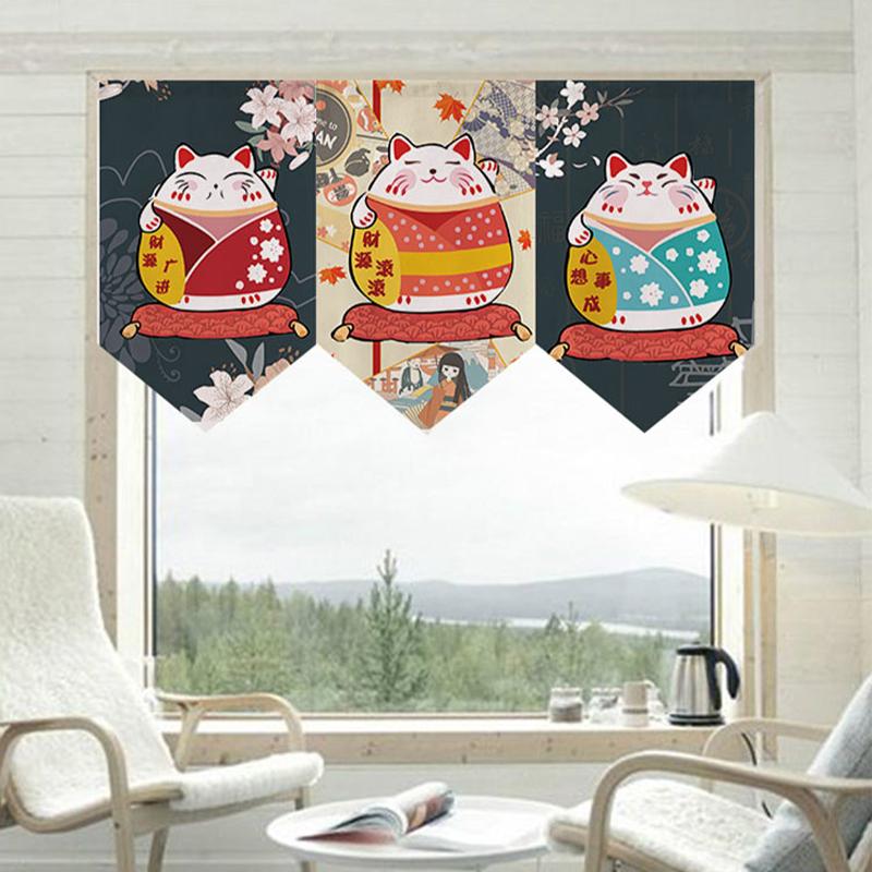 Kitchen Decor Horizontal Curtain Lucky Cat Partition Restaurant Shop Door Head Curtain Pennant Bedroom Hanging Half Curtain