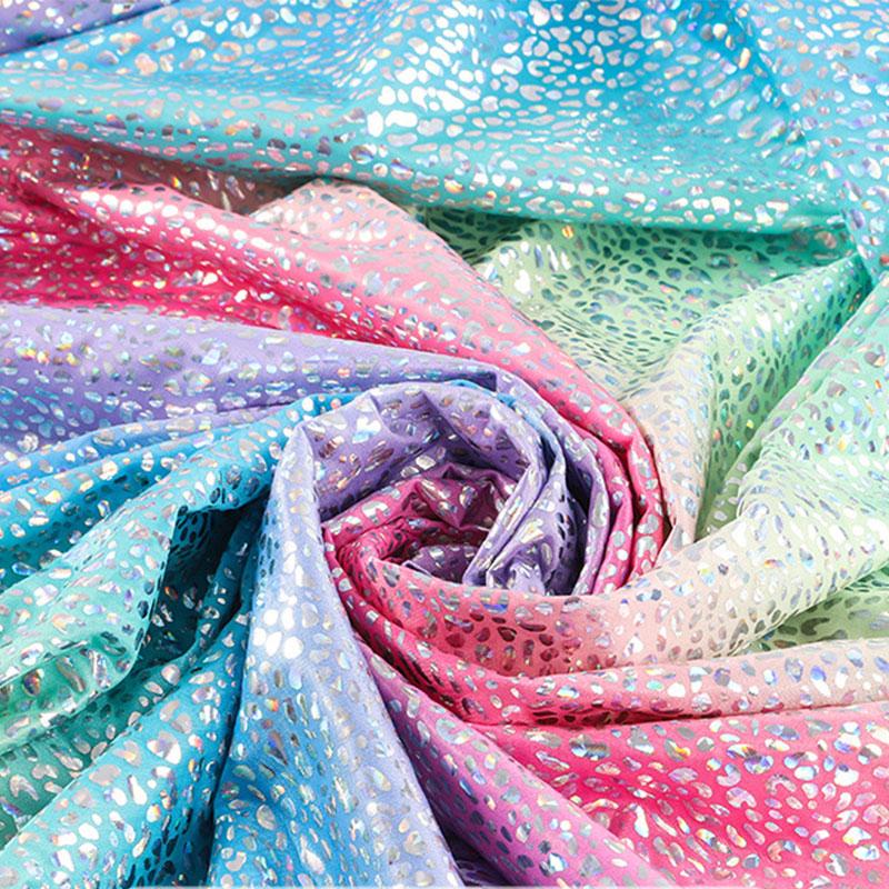 1M Glitter Laser Stretch Fabric 4 Way Stretch Iridescent Holographic Cloth For DIY Wedding Party Stage Costume Background Decor