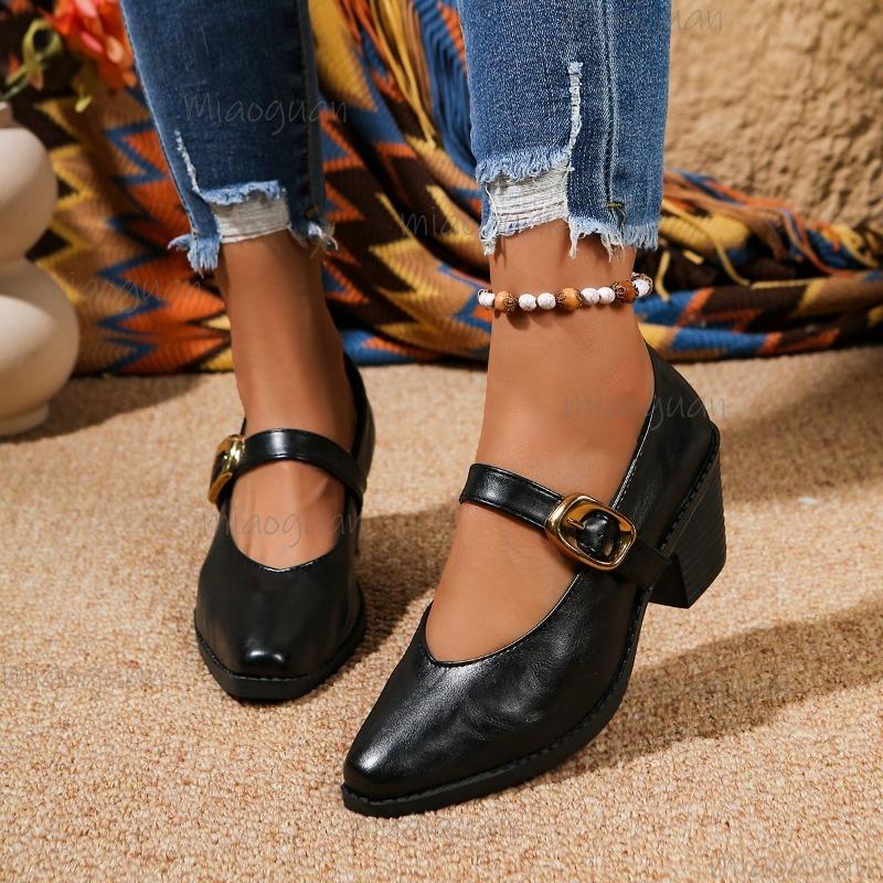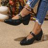Office Ladies Elegant High Heel Pumps Brown Buckle Straps Chunky Heeled Mary Janes Women's Autumn Zapatillas De Mujer Size 36-43