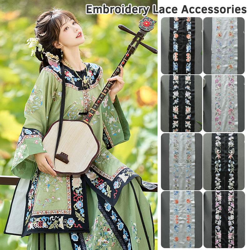 2Pcs 50cm Chinese Embroidery Lace Trim Webbing Ribbon For DIY Hanfu Cheongsam Lapel Collar Sleeve Edge Garment Decor Accessories