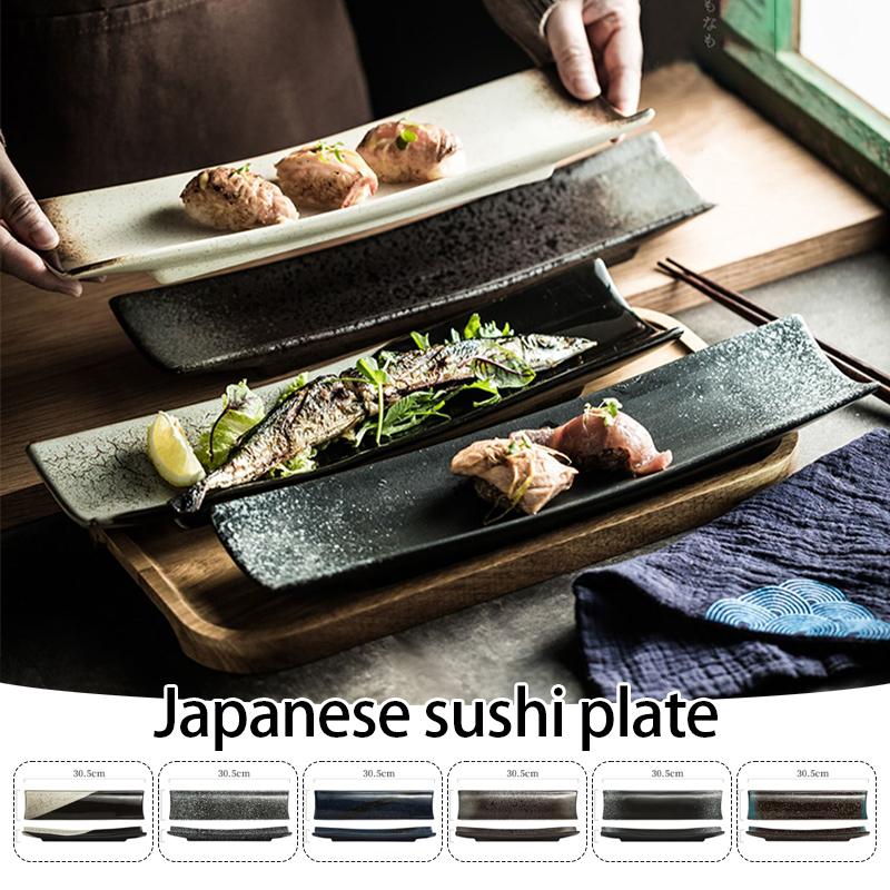 Japanese Style Ceramic Dishes Tableware Long Plate Shaped Sushi Snack Plate Barbecue Plate Sashimi Fish Plate Restaurant Plates