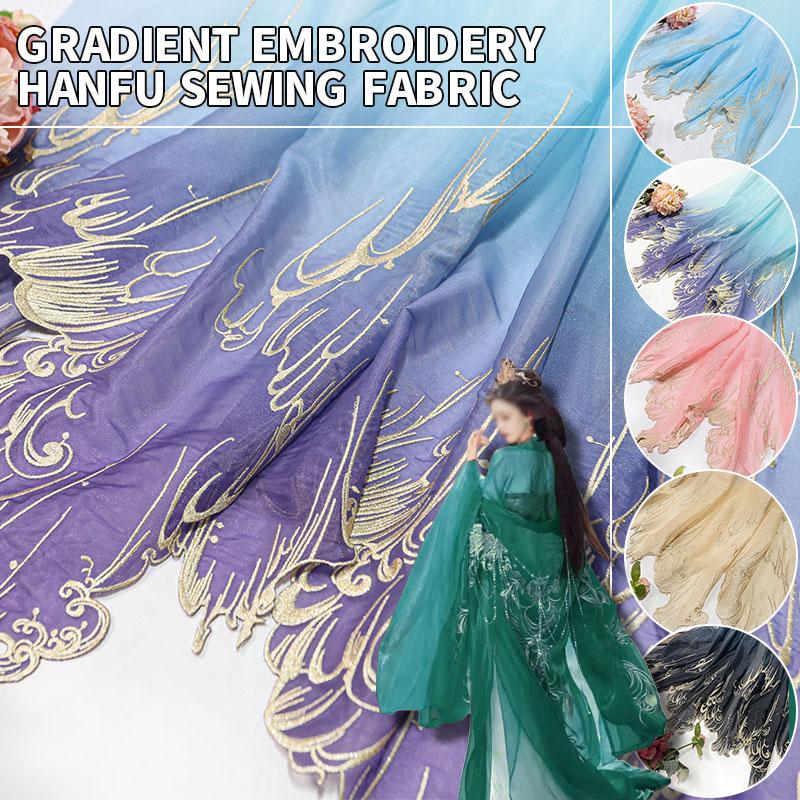 1/2/3 Meter Gradient Embroidery Lotus Leaf Fabric Chinese Style Designer Fabric DIY Sewing Hanfu Dress Stage Dance Costume