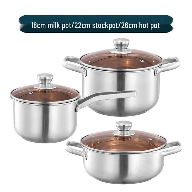 3-Piece Stainless Steel Cookware Set with Milk Pot
