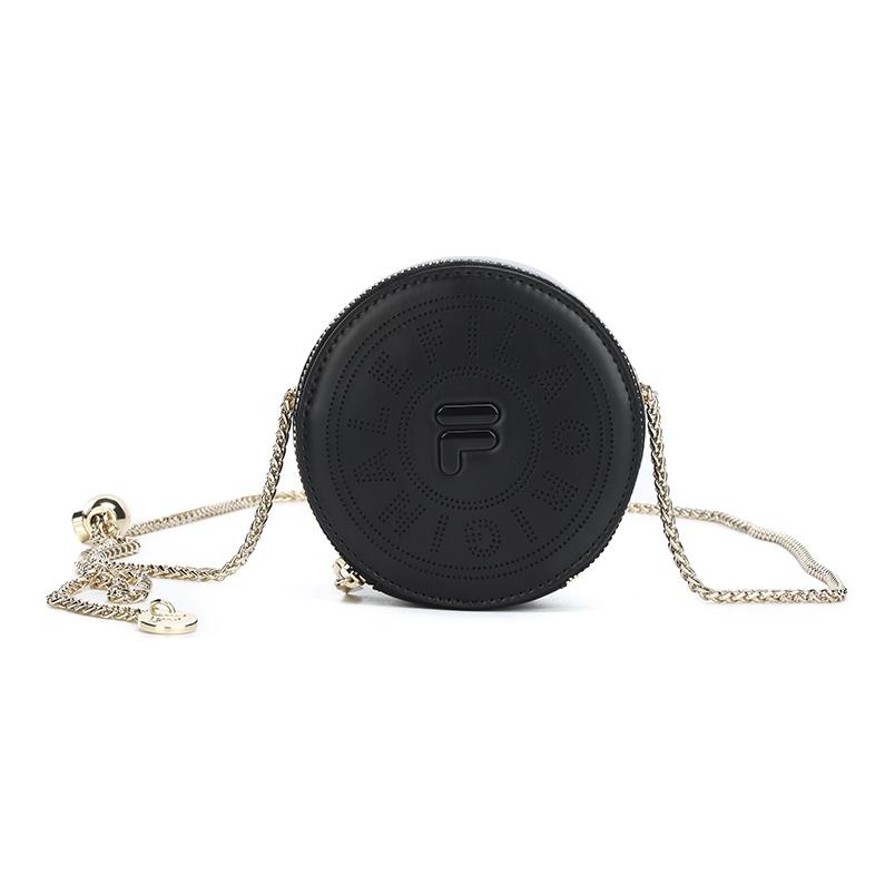 FILA Textured Commuter Chain Polyurethane Mini Round Shoulder Crossbody Bag Women bags Black F13W229167F-BK
