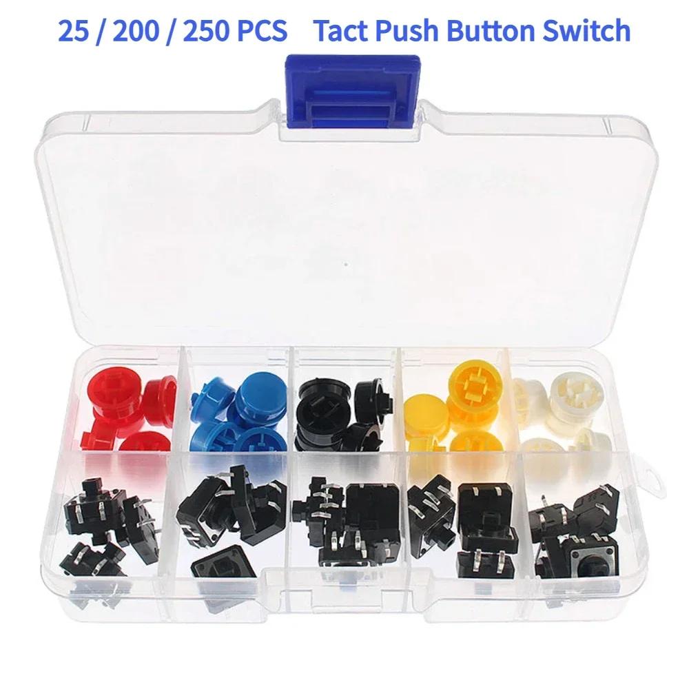 25/200/250PCS Switch Kit Micro Switch Push Button Switches DIY Assortment Kit 6x6mm 12x12mm 12x12x7.3mm