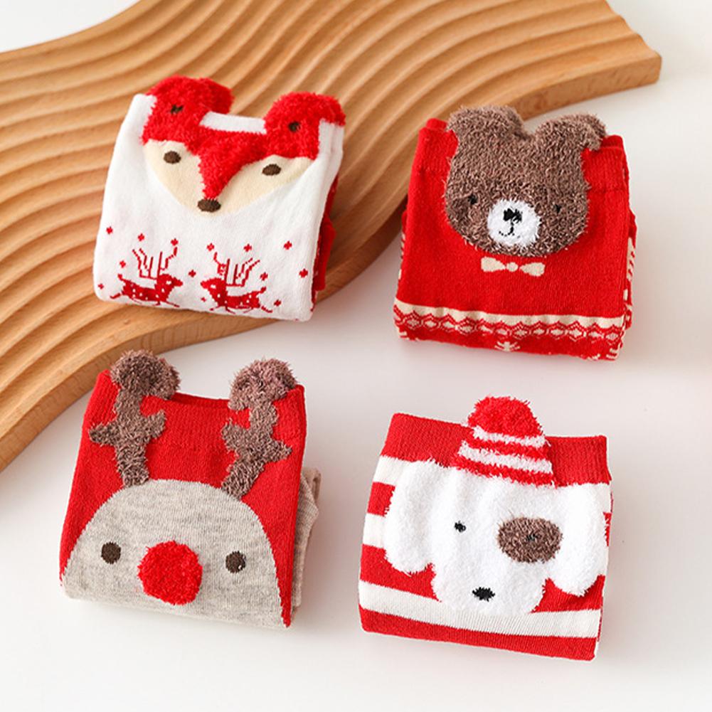 4 Pairs Womens Christmas Socks with Gift Box Elk Happy Funny Plush Socks Elk Christmas Socks for Women Men Holiday Gifts