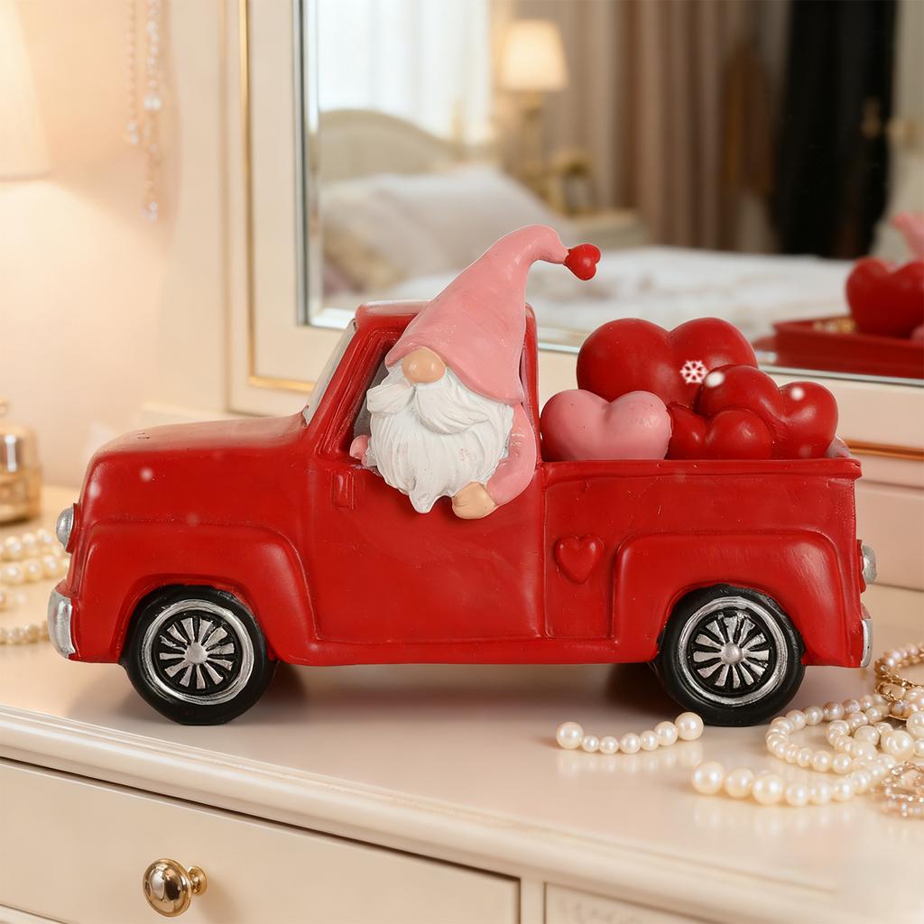 Valentine Rustic Farm Truck Gnomes Ornaments Resin Gnome Figurines Decorations for Him Her Gifts Cute Holiday Table Home Decor