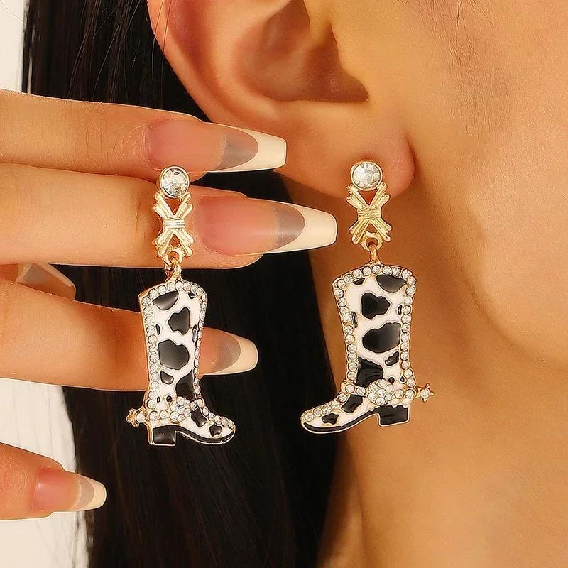 Western Cowboy Red Star Cow Pattern Boots Enamel Stud Earrings for Women Party Fashion Jewelry Minimalist Accessories Wholesale